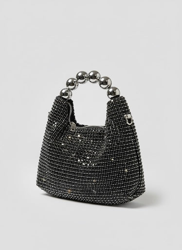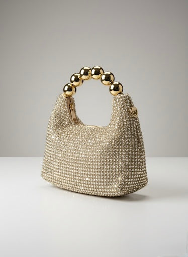 Introducing The Orb Collection, where celestial elegance meets modern artistry. The defining feature of this collection is its striking handle—a row of perfectly polished, sculptural spheres that feel both futuristic and timeless. Each bag is lavished in a cascade of micro-crystals designed to capture and refract light, creating a mesmerizing shimmer with every movement. The Orb Collection is for the woman who appreciates bold design and sophisticated glamour. This isn't just a handbag; it's a piece of wearable sculpture.